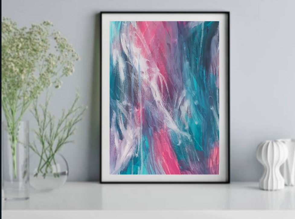 An original piece of art makes a fabulous personal gift for a loved one or for yourself. A painting on paper is an affordable way to start your original art collection, frame it up and style with some plants or some minimalist accessories in one of the featured colours. Perfect to add a modern touch to your interior home decor.